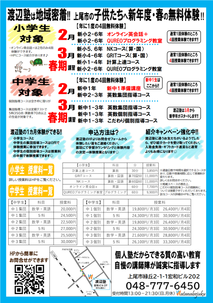 〈春期講習〉授業料50%OFFで4回体験授業